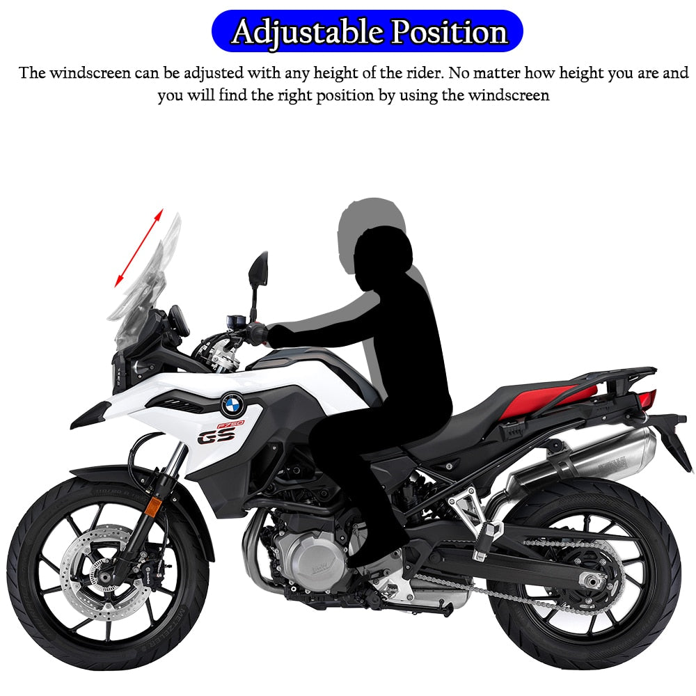 Wolfline Adjustable Height Length Windshield For 2018-2022 BMW F750GS F850GS Airflow Windscreen Extension Wind Deflector Shield Flyscreen
